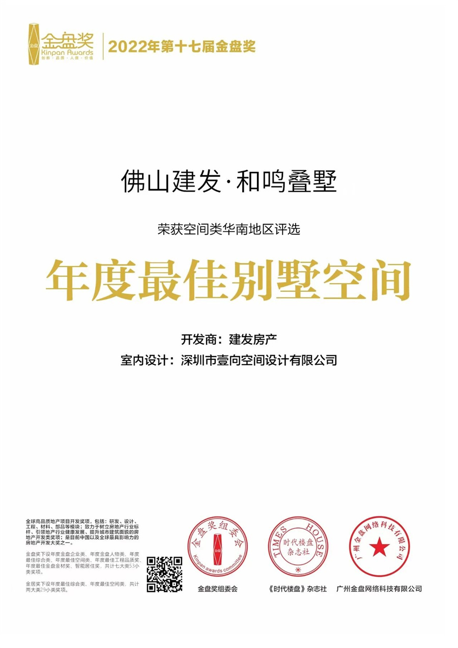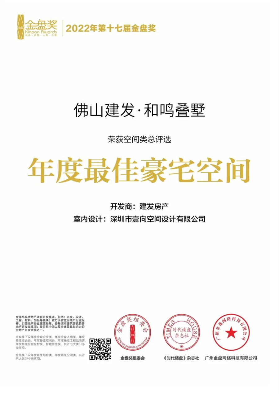 近日,壹向營造空間設計憑藉“佛山建發-和鳴疊墅”從諸多作品中脫穎而出,成功入圍並榮獲2022年度最佳別墅空間獎、2022年度最佳豪宅空間獎。