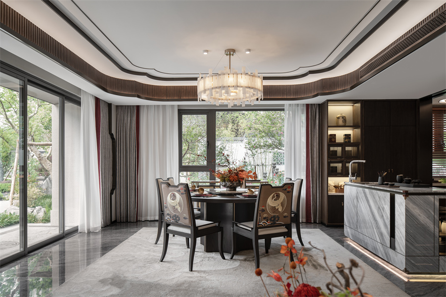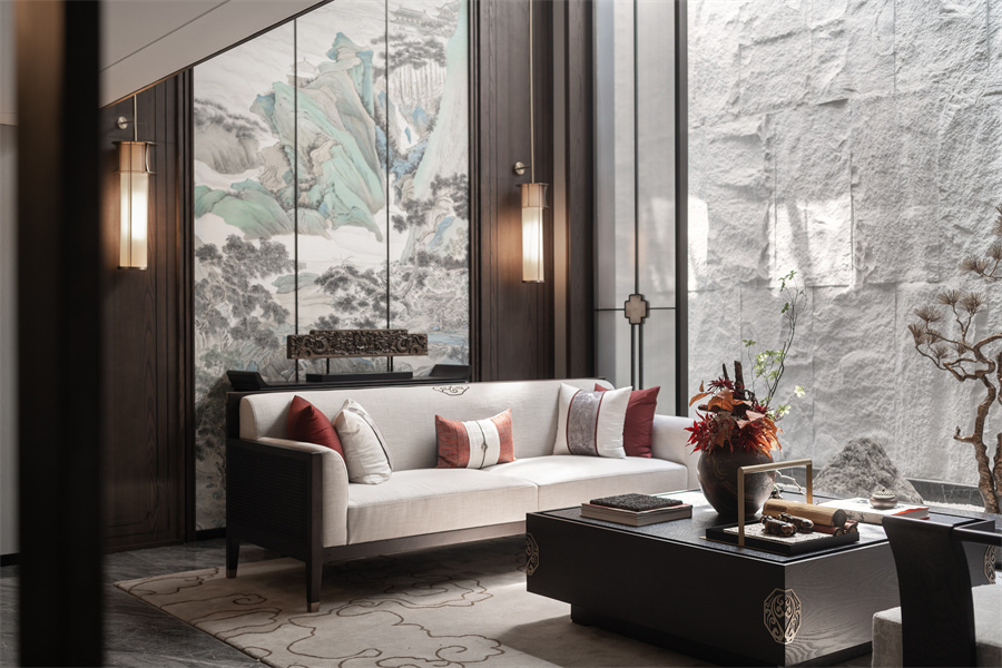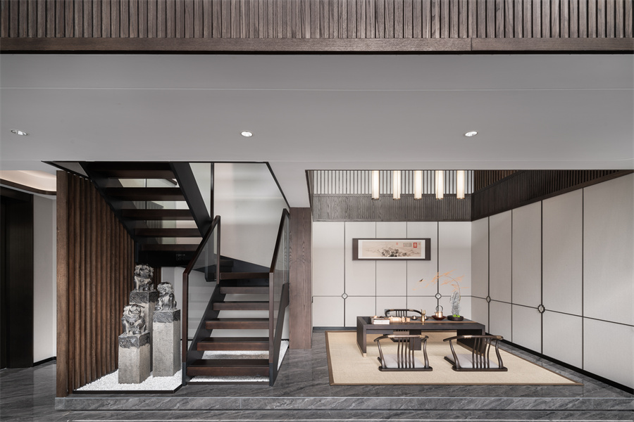 本案從山水畫作裏凝練意境,從書法作品中把握留白,從科學技術內洞察先進,讓古樸詩意與現代包容結合,讓藝術傳承與科技發展對話,在一座城中的熙熙攘攘裏,築起內心的詩意高臺。