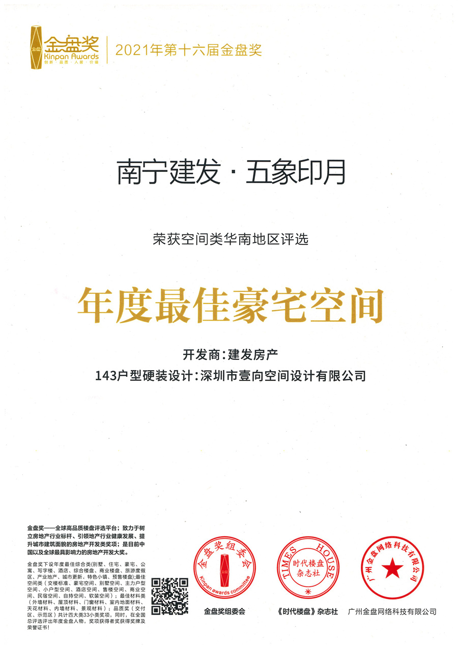 近日,壹向營造空間設計憑藉“南寧建發-五象印月”從諸多作品中脫穎而出,成功入圍並榮獲2021年度最佳別墅空間獎、2022年度最佳豪宅空間獎。