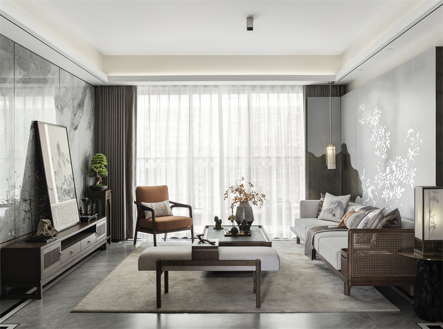 本項目以“東方意境·現代演繹”爲核心設計理念,致力於打造兼具文化深度與生活美學的高品質空間體驗。在整體空間佈局中,我們融合了傳統中式美學精髓與當代簡約設計語言,通過材質、光影與細節的精妙平衡,營造出靜謐雅緻、氣韻生動的居住氛圍。