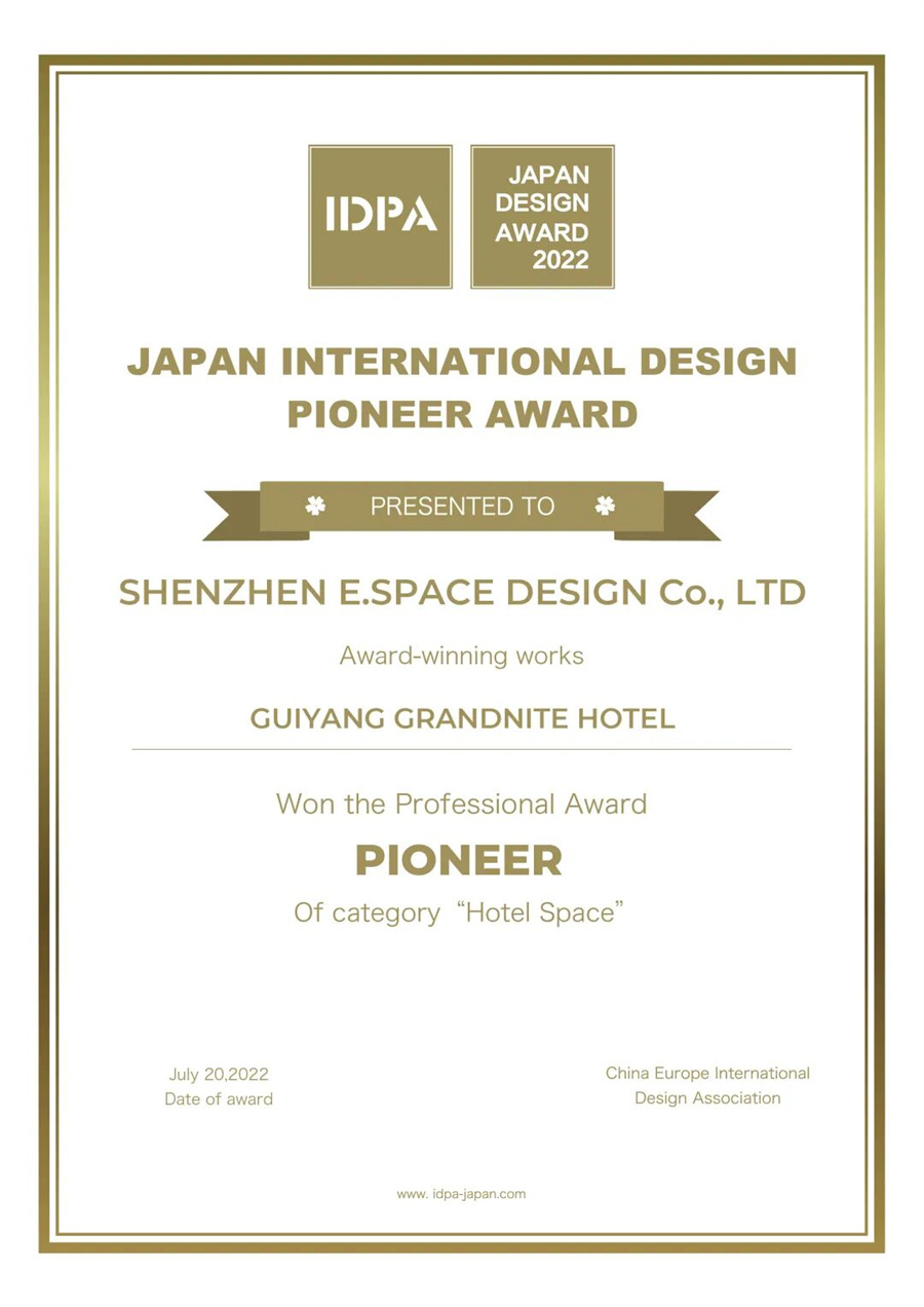 JAPAN IDPA AWARD(Japan International Pioneer Design Award)——日本國際先鋒設計大獎,是由日本權威設計機構發起並主辦的國際性設計賽事,致力於挖掘與表彰全球範圍內具有前瞻性、創新性與人文關懷的優秀設計作品。自創辦以來,IDPA 以嚴謹的評審標準、國際化的視野和對設計本質的深度探索,迅速成為亞太乃至全球設計界備受矚目的重要獎項之一。該獎項涵蓋建築、室內、景觀、產品及藝術裝置等多個領域,鼓勵設計師突破邊界、融合文化、回應時代,推動設計與生活、環境、社會的可持續對話。榮獲 IDPA 獎項,不僅代表著國際專業領域的高度認可,更是設計作品邁向世界舞台的重要里程碑。