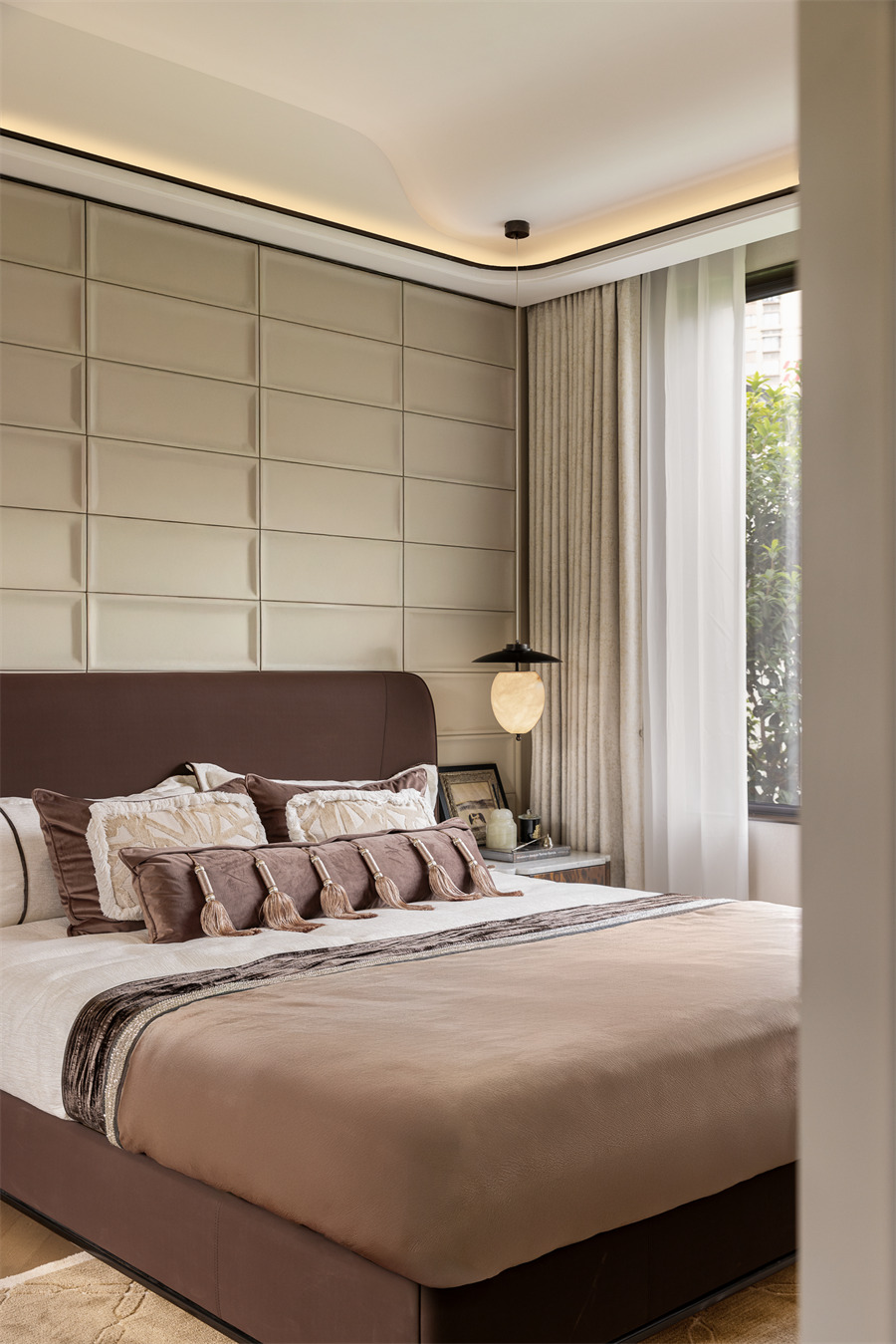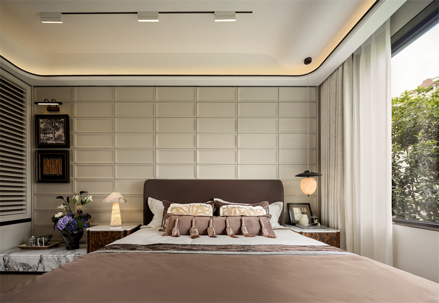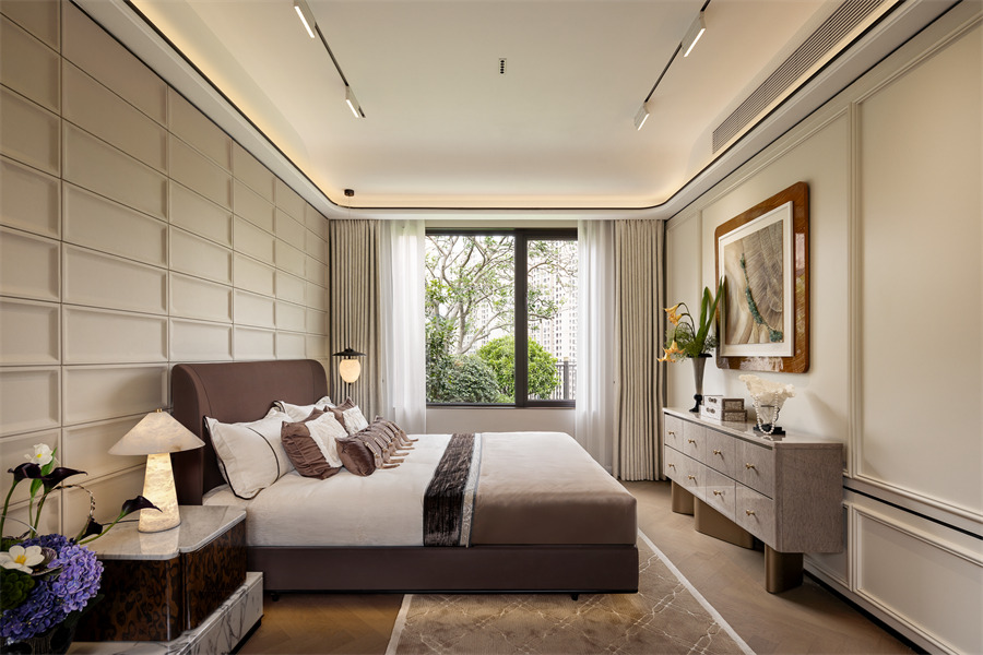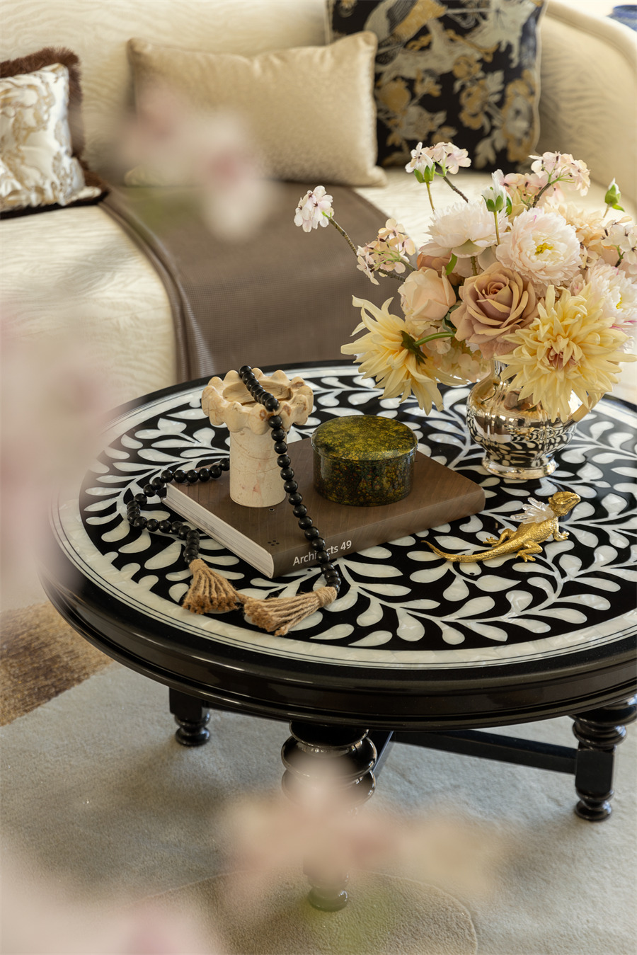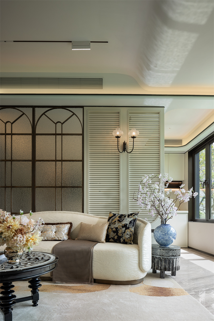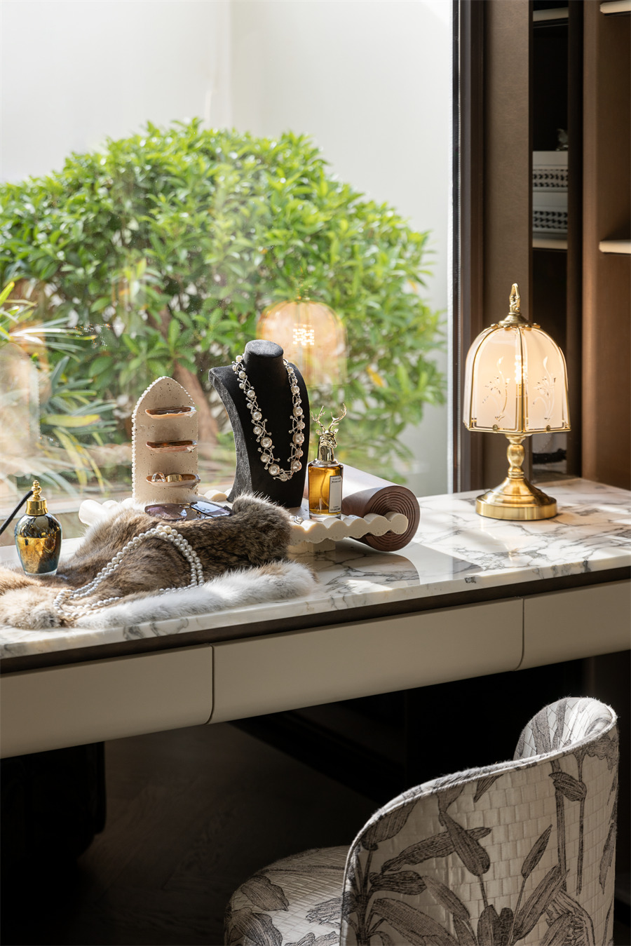 本空間以“現代東方雅緻”爲設計主旨,融合古典美學與當代生活理念。大面積天然大理石牆面搭配溫潤木質格柵,營造出沉穩而富有層次的視覺體驗。暖色調燈光與壁爐設計烘托溫馨氛圍,精選傢俱與藝術陳設呼應自然意境,提升空間人文氣質。整體佈局通透開闊,兼顧儀式感與日常舒適,詮釋高端住宅的精緻生活方式。