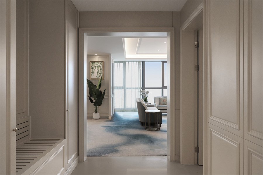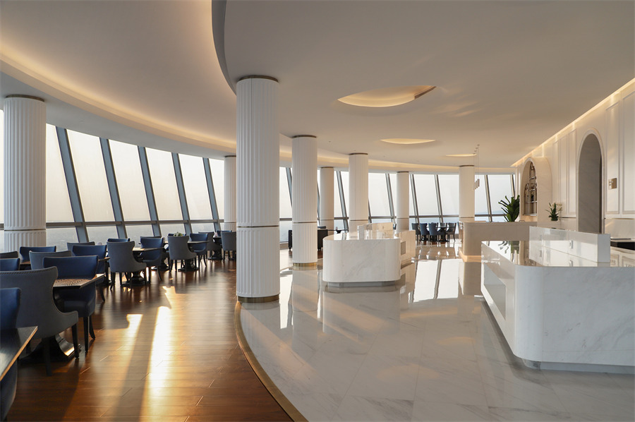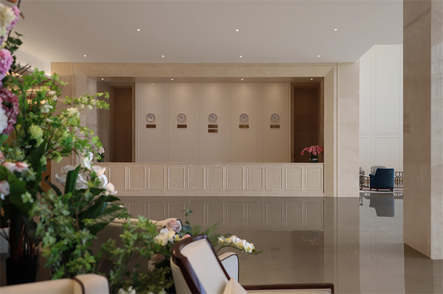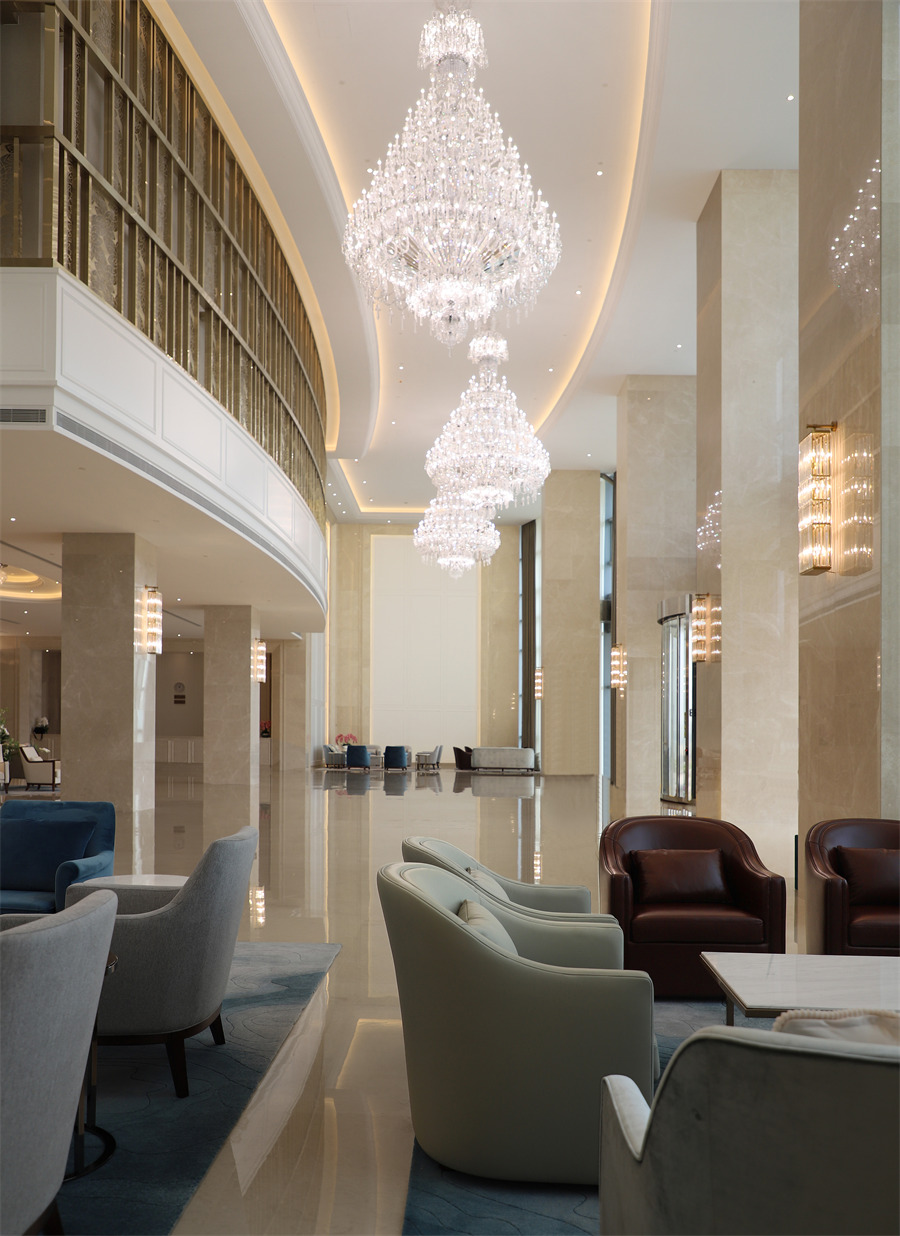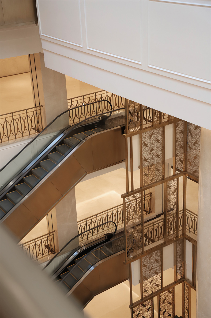 本項目以“光與空間的禮讚”爲設計核心,打造通透大氣的公共中庭。高挑空間配以天窗引入自然採光,結合點光源與線性照明,營造明亮而溫暖的氛圍。大理石立柱與金屬扶手電梯相映成趣,強化建築秩序感與現代質感。整體佈局疏朗有序,兼具功能性與美學高度,彰顯高端空間的尊貴氣質與人文關懷。