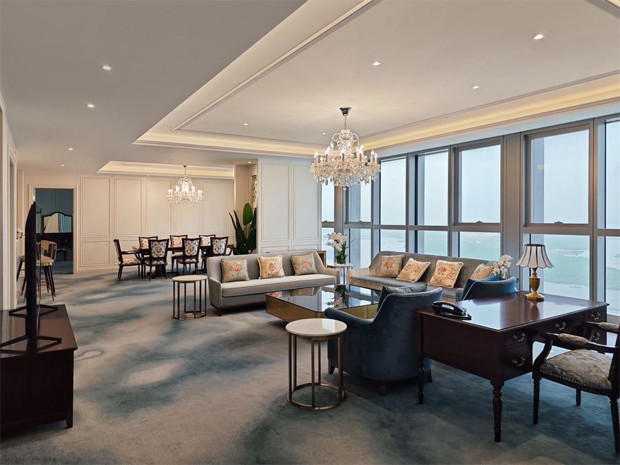 作爲國家形象與地標性建築,此地塊未來規劃周邊集中了布拉採維爾重要的發展項目,高端別墅區、遊艇碼頭等,整個場地以雙子塔爲中心,在更大尺度上呼應建築的體量,並將場地北側的城市綠帶與建築進行銜接,營造優越的酒店室內環境和室外環境。我們與北京建工展開合作,承接了剛果雙子塔的室內設計。從瞭解到滲入,遵循自然文化的法則、規律,以在地性文化着手,聯合開展其室內設計。