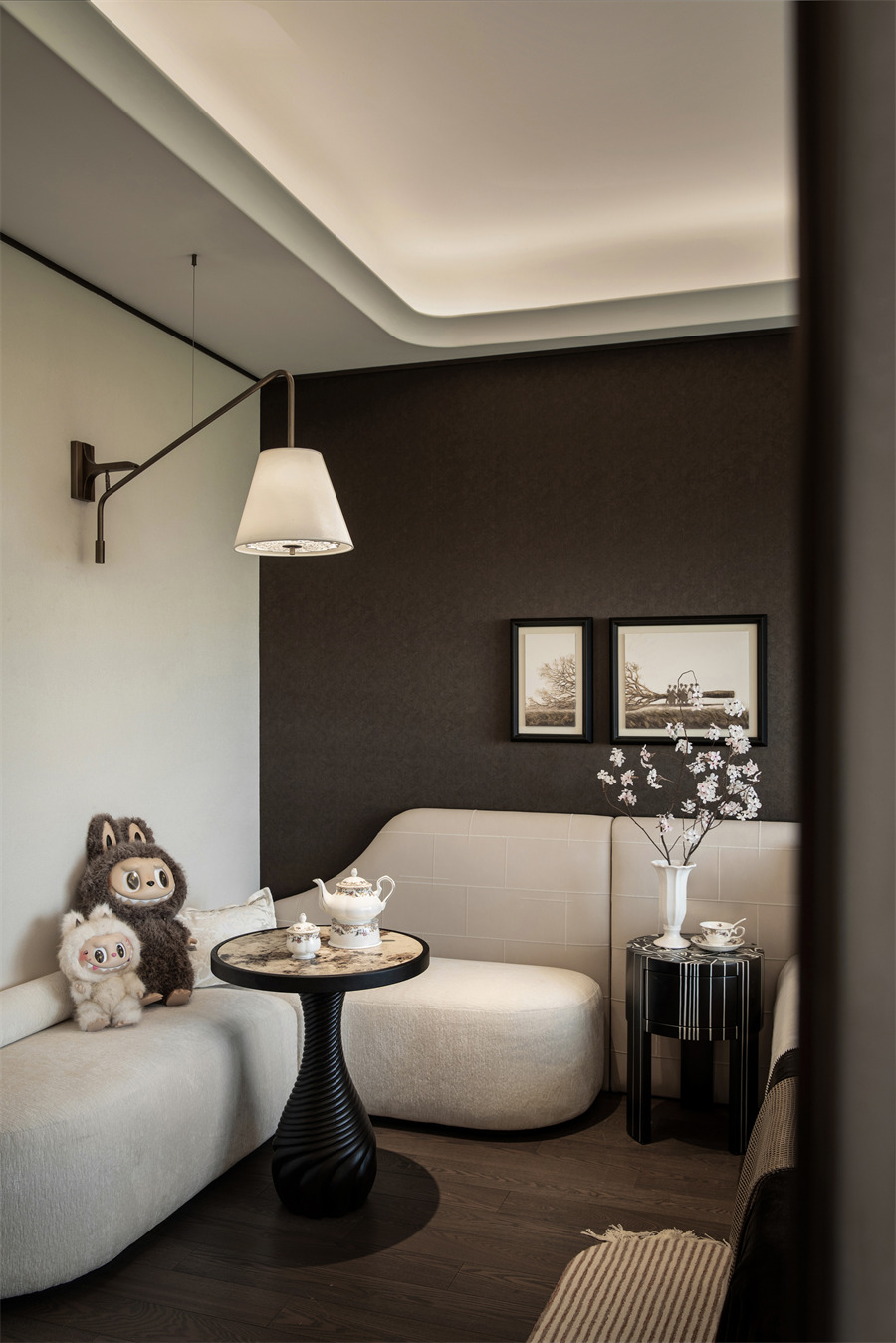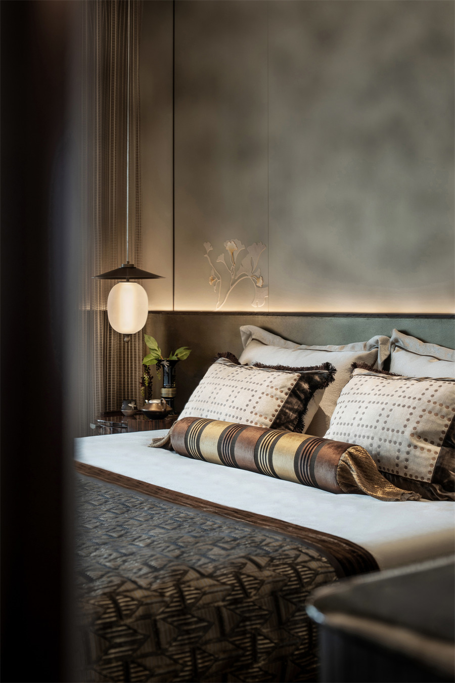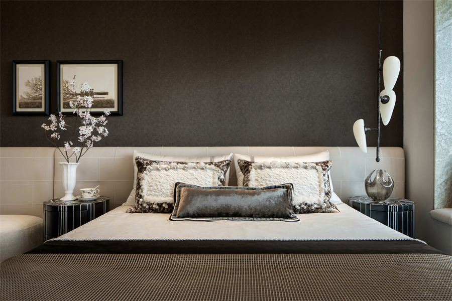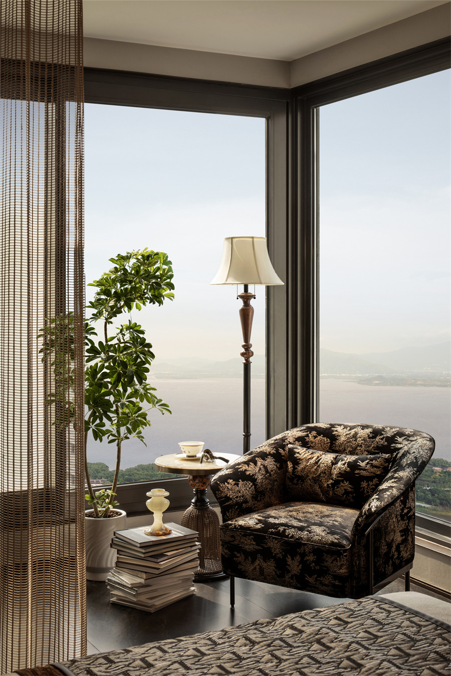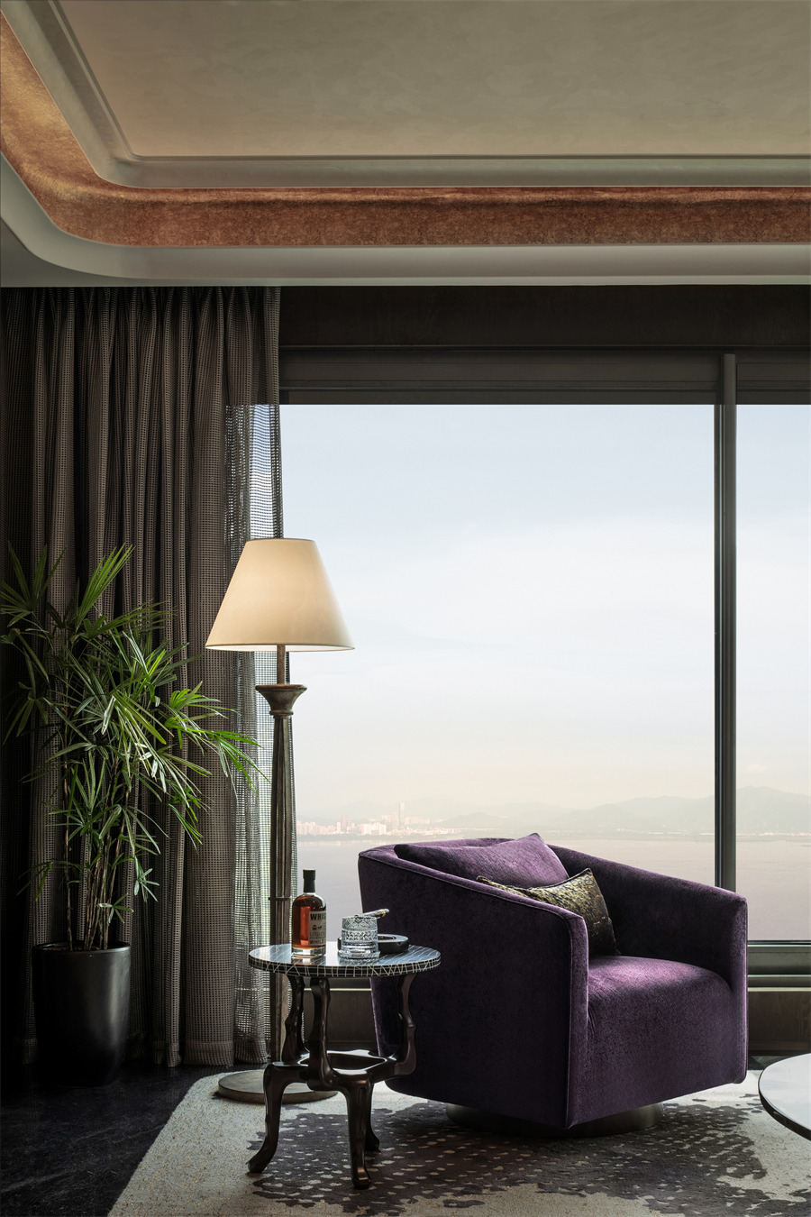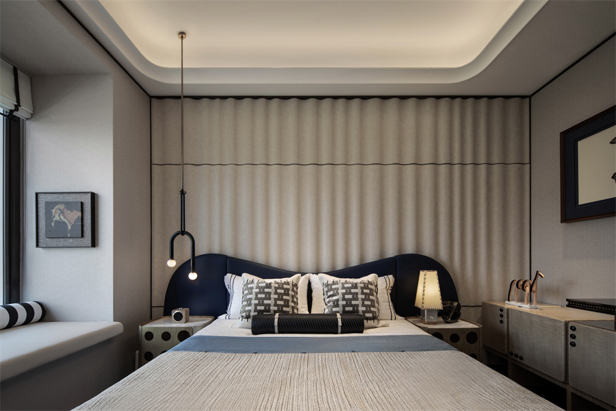 本項目以“都市中的靜謐棲所”爲設計理念,將現代奢華與自然意境完美融合。大面積落地窗引入壯闊海景,拓展空間視野。深色木飾面與藝術壁畫營造沉穩氛圍,搭配高級灰調軟裝與金屬細節,彰顯低調質感。地毯紋理呼應自然肌理,整體佈局開放而有序,打造兼具美學與舒適性的高端生活空間。