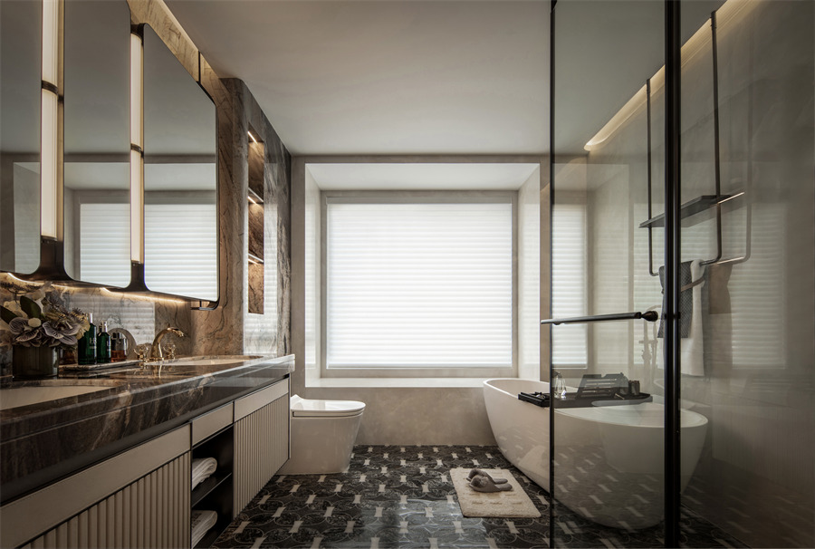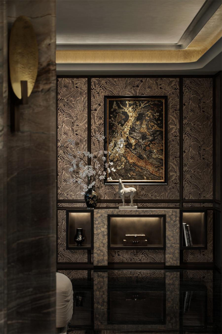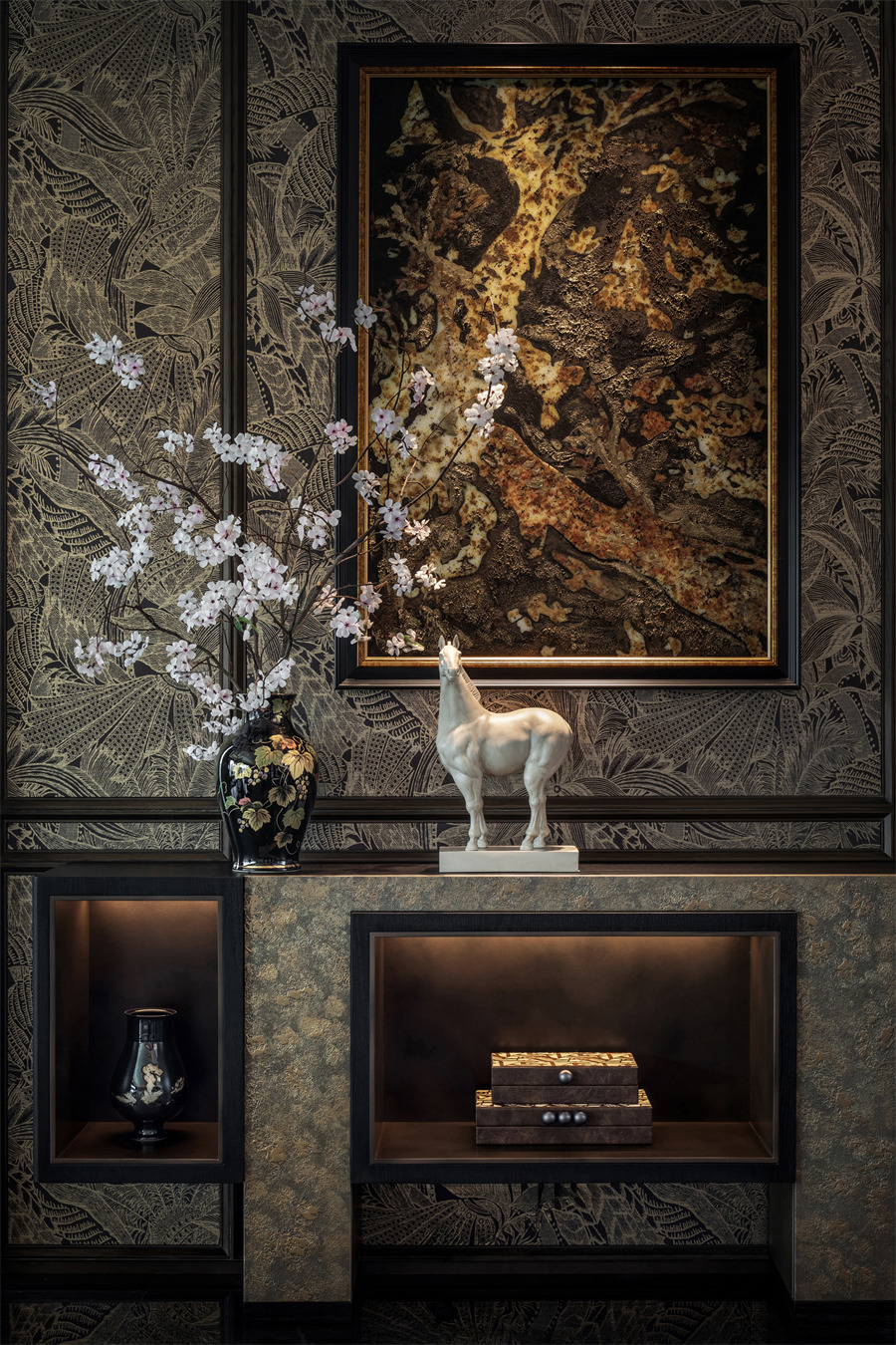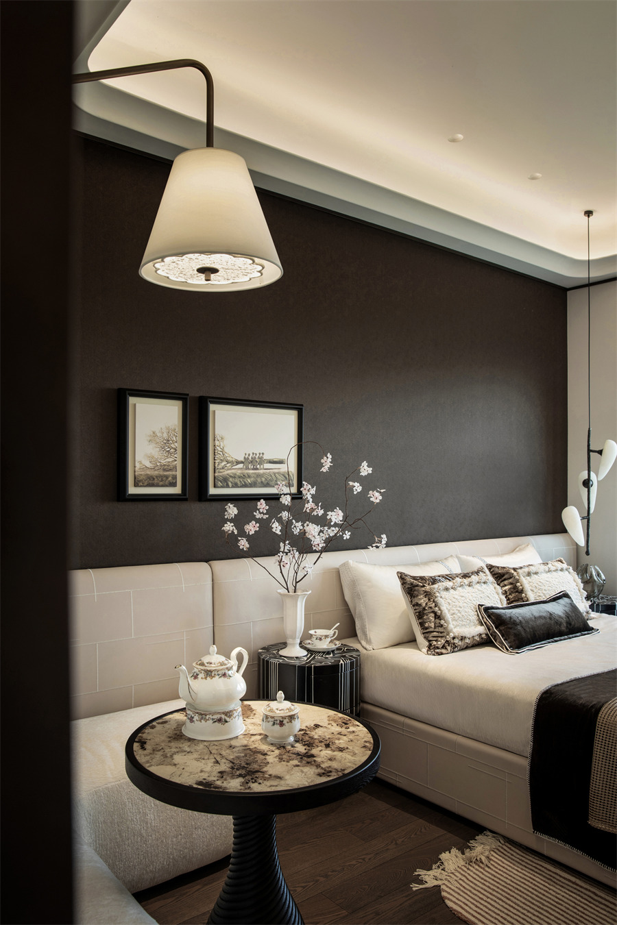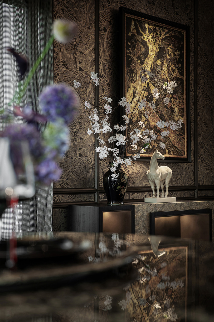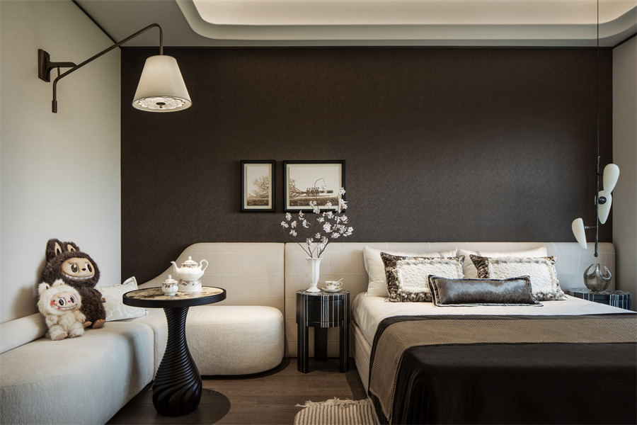 本項目以“都市中的靜謐棲所”爲設計理念,將現代奢華與自然意境完美融合。大面積落地窗引入壯闊海景,拓展空間視野。深色木飾面與藝術壁畫營造沉穩氛圍,搭配高級灰調軟裝與金屬細節,彰顯低調質感。地毯紋理呼應自然肌理,整體佈局開放而有序,打造兼具美學與舒適性的高端生活空間。