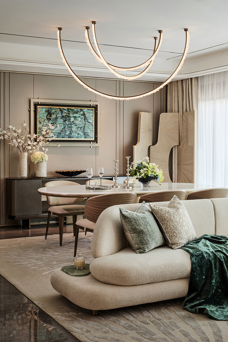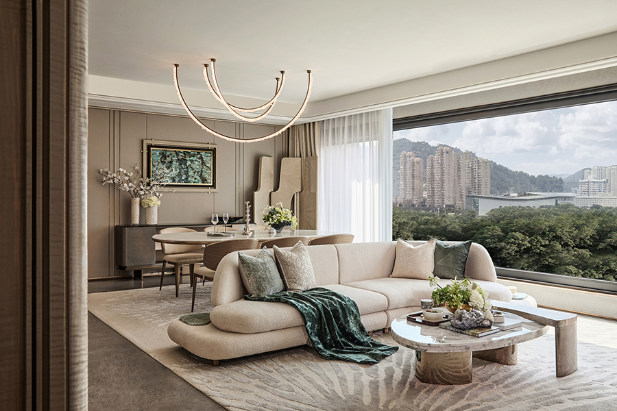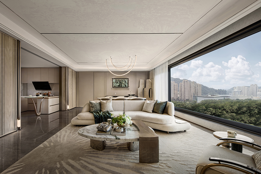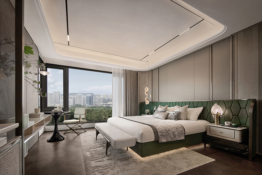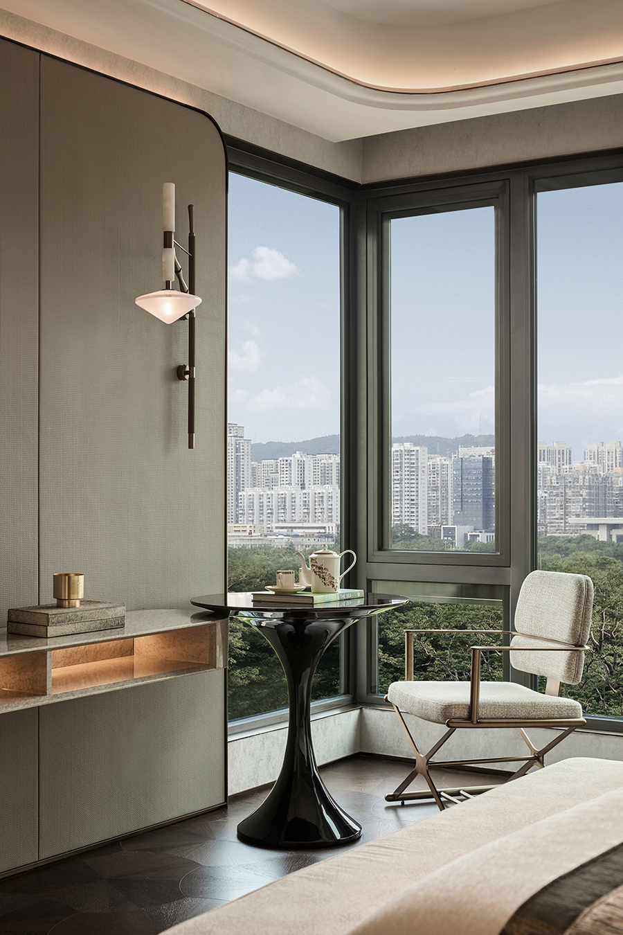 政核心。弧形玻璃幕牆將湖光四季納爲私藏畫境,日日皆若沉浸一場素雅IMAX光影藝術。讓心境在繁華靜處,於容與安然。