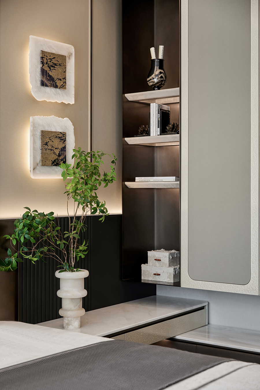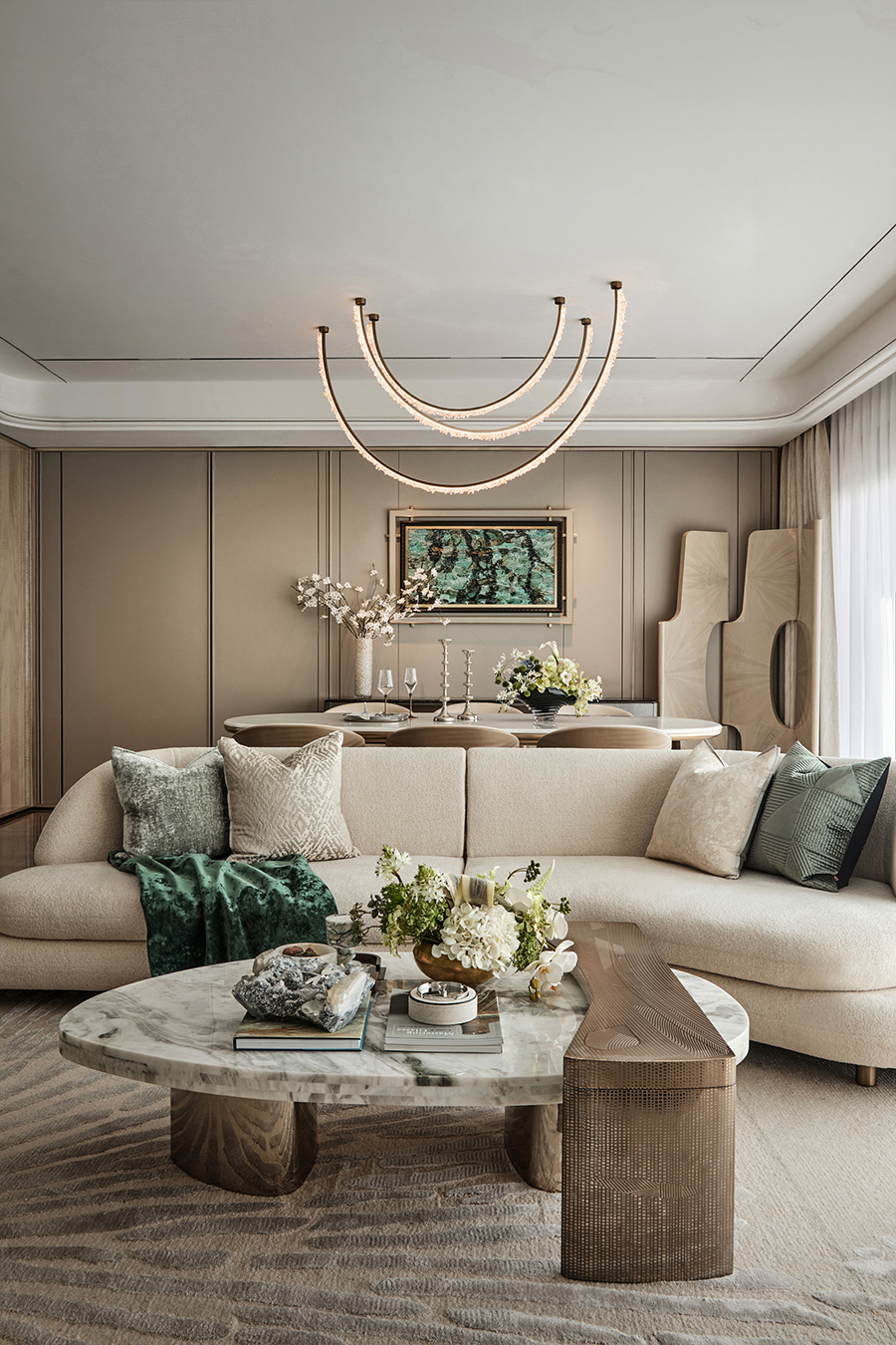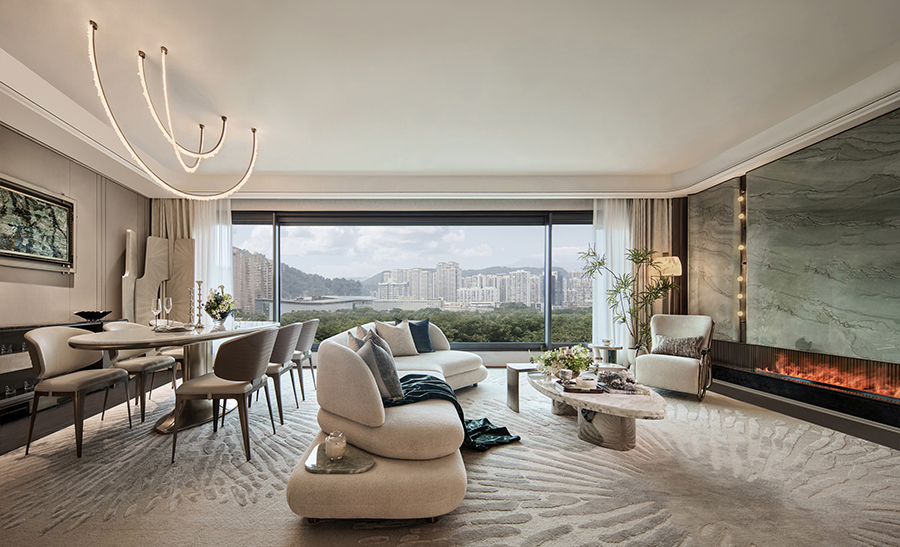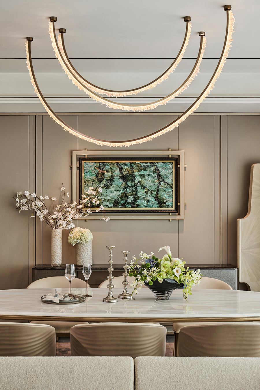 政核心。弧形玻璃幕牆將湖光四季納爲私藏畫境,日日皆若沉浸一場素雅IMAX光影藝術。讓心境在繁華靜處,於容與安然。