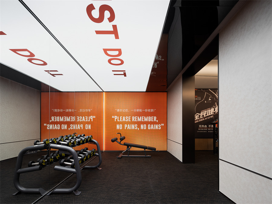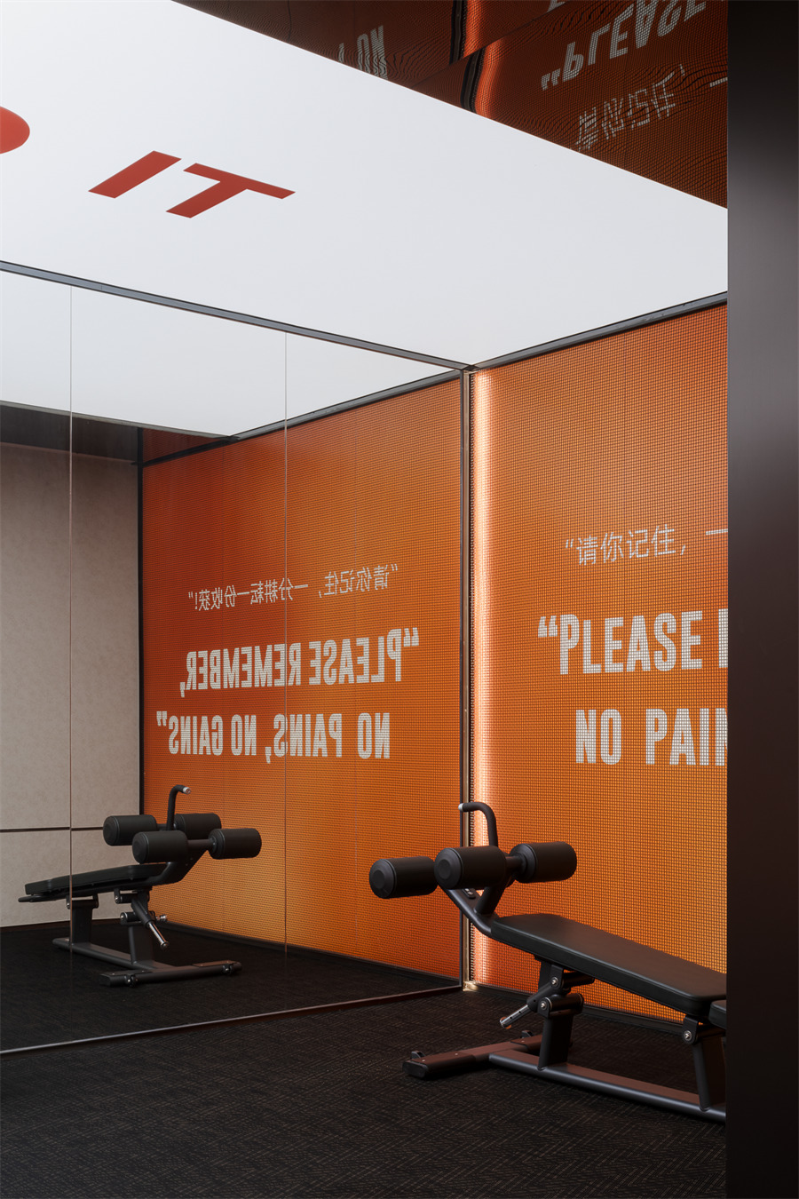 當下都市青年生活隨着社會的推動、意識的提升下,健身已成爲一種全民的健康生活方式,健身俱樂部、健身工作室的層出不窮,激發鍛鍊的靈感動力,是其健身空間的內核。我們劃推出覺醒運動概念,設計旨在還原物理空間和個體潛意識深層“感應召喚”,強調酷感的空間之下,活力、力量、先鋒、真誠的聯結方式亦是其內在友好的表達,以單向符號化堆疊,意圖呈現真實的內在自我並傳達無畏的逐夢態度,在同與不同,變化與不變中,我們看到一個屬於這個時代年輕人的精神與力量。