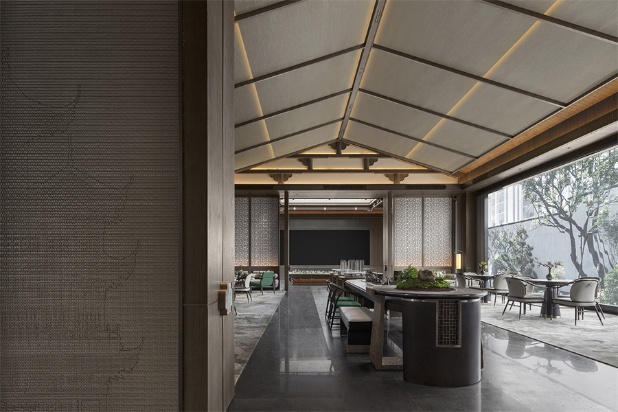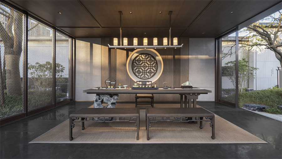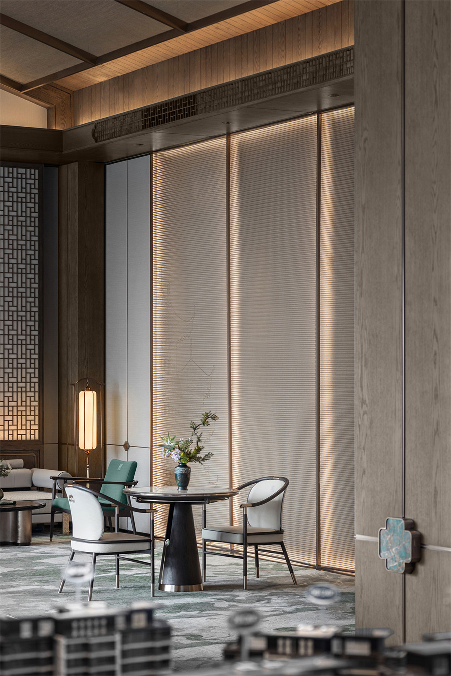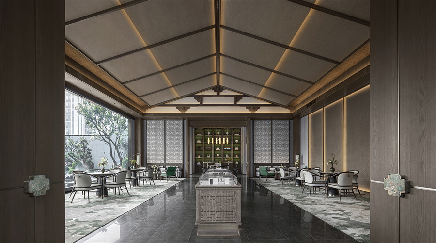 莆田縵雲售樓中心,風雅宋韻,以“徽”定調,引古喻今將建築美感室內化與空間功能匹配,構建“瞻見遊廊、聆堂聚樂、吟書休憩、把酒言歡、品茗趣談”五個不同生活場景,以遊園式的空間體驗,引領遊人重沐千古雅韻的生活逸趣。