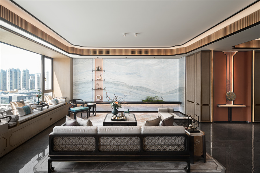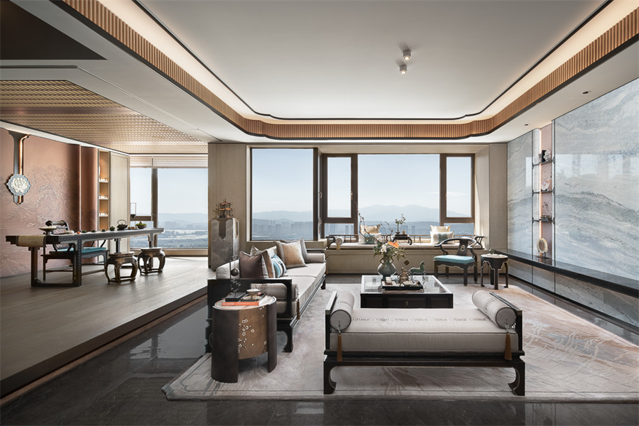 漳州龍巖,一座名副其實的山城,四面青山環繞,天地賦畫境。在本案中,設計師依山就勢,以城芯意蘊爲墨,將山城的悠然之姿與東方的古典美學相融,在自然光影中渲染詩意,於淡香古韻間點染出一幅清逸素雅的詩意畫境,每一隅都賦予居者豐盈共情。